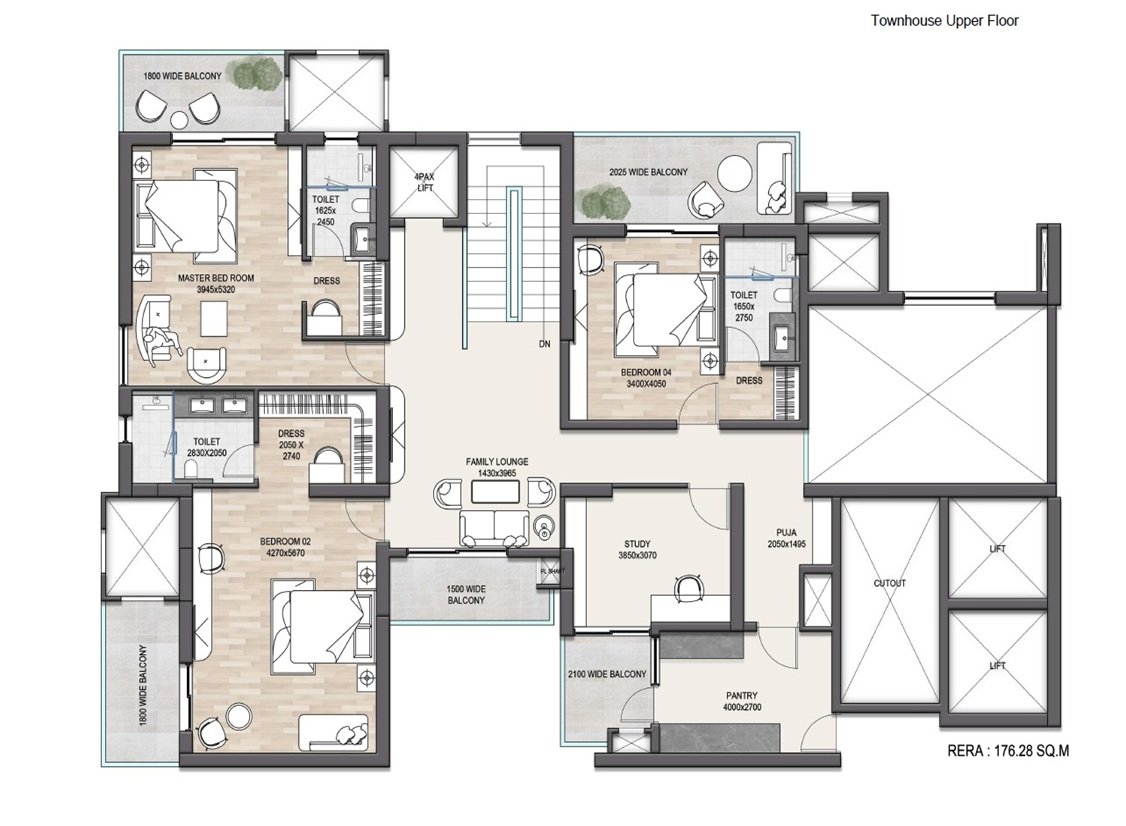 | Unit | 4 BHK, Duplex, Townhouse, Sky Villa |